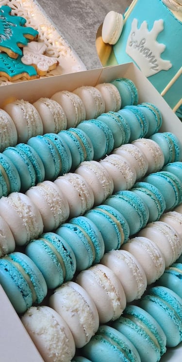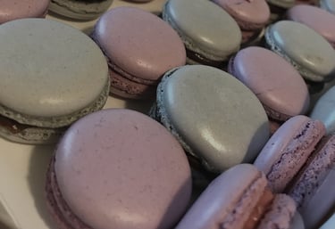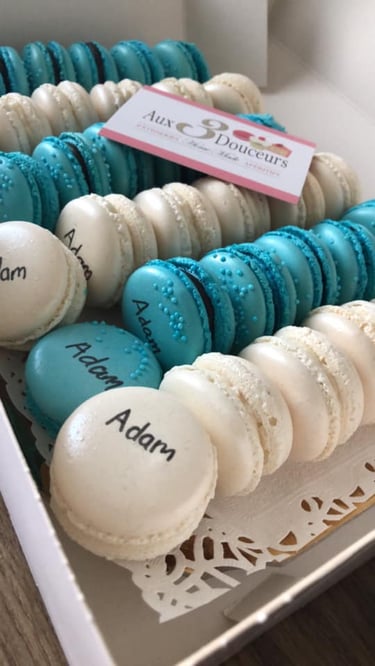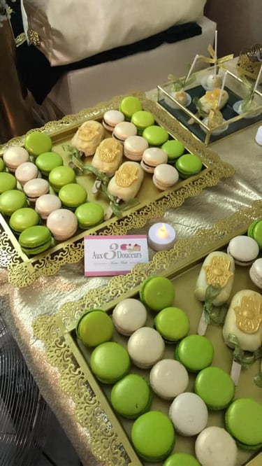 Mini-fours et macarons, réalisés artisanalement avec des ingrédients de qualité.